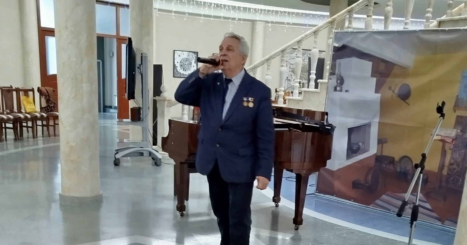 Александр Павлович рассказал о поездках в Луганскую народную республику, начиная с 2014 года; об организации благотворительных концертов перед бойцами СВО и 21-ой отдельной бригады оперативного подчинения и жителями городов и районов республики; об издании сборника избранных стихов поэта Сергея Есенина карманного формата, которые были направлены за «красную ленточку» и в военные госпитали. Вторая участница - лауреат всероссийских и международных конкурсов, экс-солистка Государственного академического Северного русского народного хора Мария Грегуль, исполнила песни "Русь моя", муз. Л. Зыковой, слова Ж. Беликовой и "Я люблю снега России", муз. Г. Пономаренко, слова В. Бокова.